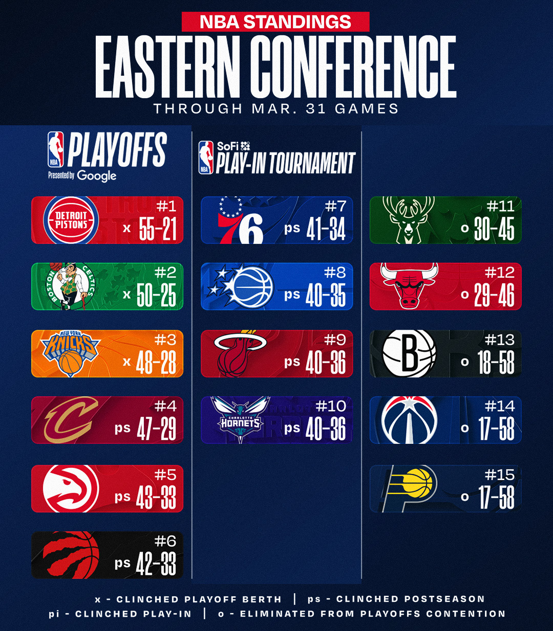截至今日赛后的季后赛形势