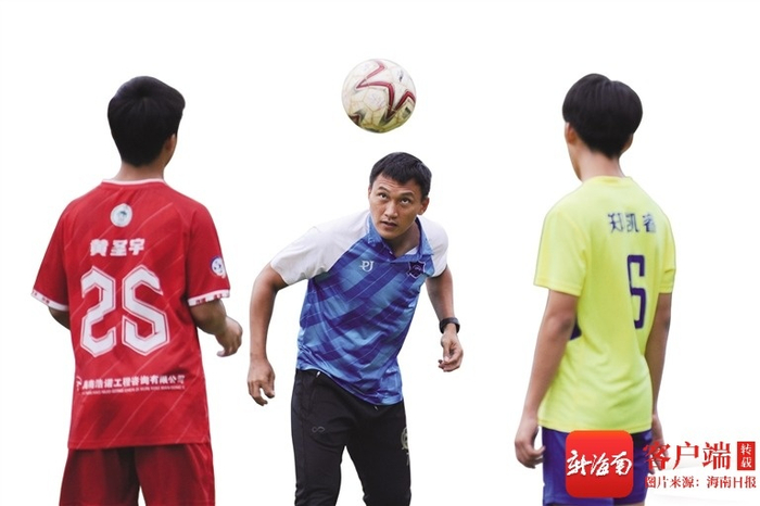 海南中学足球队主教练王存得(中)带着学生训练。他是今年“琼超”万宁队队员。海南日报全媒体记者 封烁 摄“能在区域赛中战胜一众劲敌捧起冠军奖杯,实属不易。”王存得说,虽然最后在总决赛中只获得了第六名,但一路拼搏的比赛经历,为孩子们提供了宝贵的学习机会。